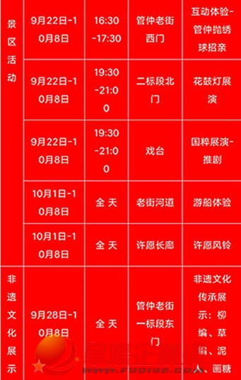 時隔19年,再次遇到中秋節(jié)與國慶節(jié)在同一天,如此特別的一天,大家好像早都做好了出游的準(zhǔn)備,齊聚管仲老街,慶祝雙節(jié)。 △網(wǎng)紅互動打卡圖 月是情感的寄托,望月念遠(yuǎn),相思難眠,管仲老街“月是故鄉(xiāng)明”中秋詩會來了。帶你徜徉在詩歌的國度,享受著詩的浪漫。 △中秋詩會 接下來精彩的撂地雜耍表演還有集造型、彩扎、雜技、戲曲等藝術(shù)一體的肘 △肘閣 △肘閣 △撂地雜耍 當(dāng)然屬于潁上管仲老街常態(tài)民俗活動也不能少-花鼓燈展演,集舞蹈、燈歌和鑼鼓音樂、情節(jié)性的雙(三)人舞和情緒性集體舞完美結(jié)合于一體,期待您來欣賞哦。 △花鼓燈展演 當(dāng)然來老街,怎么能少了乘船的體驗 乘坐小船,邊看夜景邊談心 享受片刻的休閑也是不錯的選擇哦 △游船圖 當(dāng)然還有漢服小姐姐哦,快來偶遇吧 △游客打卡圖 △氛圍圖 接下來活動預(yù)告 |