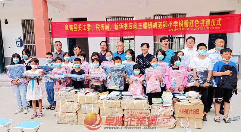 5月31日上午,阜南縣關(guān)工委、稅務局、教育局、新華書店等單位相關(guān)負責人一行帶著價值22000余元的紅色書籍和學習用品走進阜南縣王堰鎮(zhèn)胡老郢小學開展愛心捐贈活動。校方負責人對慰問團一行的到來表示熱烈的歡迎,對他們的大愛善舉表示感謝。受贈同學也紛紛表示,一定會好好學習,用更加優(yōu)異的成績來回報愛心人士。(費之路) |