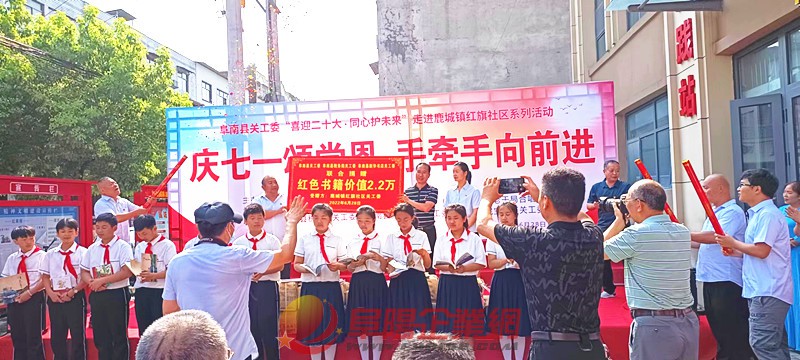 慶七一頌黨恩,手牽手向前。6月28日上午,阜陽市新華書店總經(jīng)理丁勇,阜南縣委常委、鹿城鎮(zhèn)黨委書記王振,阜南縣關(guān)工委主任楊文久,阜南縣稅務(wù)局黨委書記、局長、關(guān)工委名譽主任任東堂,縣稅務(wù)局關(guān)工委第一主任陳曙,阜南縣新華書店經(jīng)理陳立等一行走進鹿城鎮(zhèn)紅旗社區(qū),并為紅旗社區(qū)捐贈2.2萬余元的紅色書籍。 捐贈現(xiàn)場,縣稅務(wù)局關(guān)工委“五老”志愿者,協(xié)同配合縣委組織部、鹿城鎮(zhèn)、二小、皖寶酒廠等關(guān)工委“五老”志愿者,獻上“沒有共產(chǎn)黨就沒有新中國”等歌曲暨相關(guān)節(jié)目。(田永濤) |