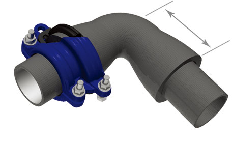 適用于球墨鑄鐵管承口三通、承口彎頭等部位的搶修。因空間有限,普通承插修補器放不下而無法搶修的情況下使用。